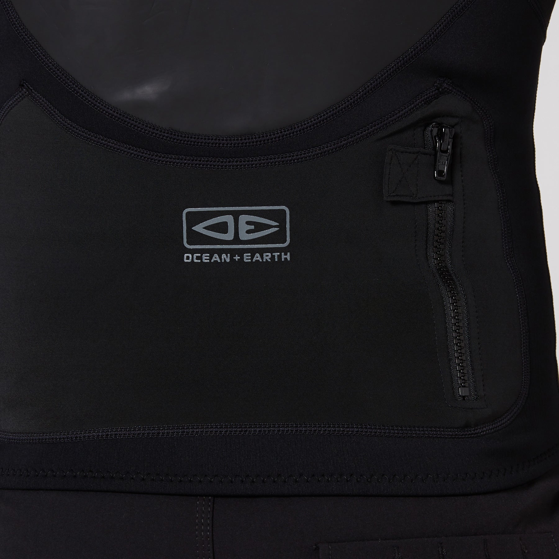 Need a wetsuit vest for those warm summer days? Add protection and warmth with the Double Black Long Sleeve Front Zip Vest from Ocean and Earth. This wetsuit vest features 1.5mm 360 Ultra Stretch neoprene, flat locked seams for comfort and internal plush lining for warmth. With a back pocket and nylon/ elastane underarms, this vest is perfect for those long paddles.