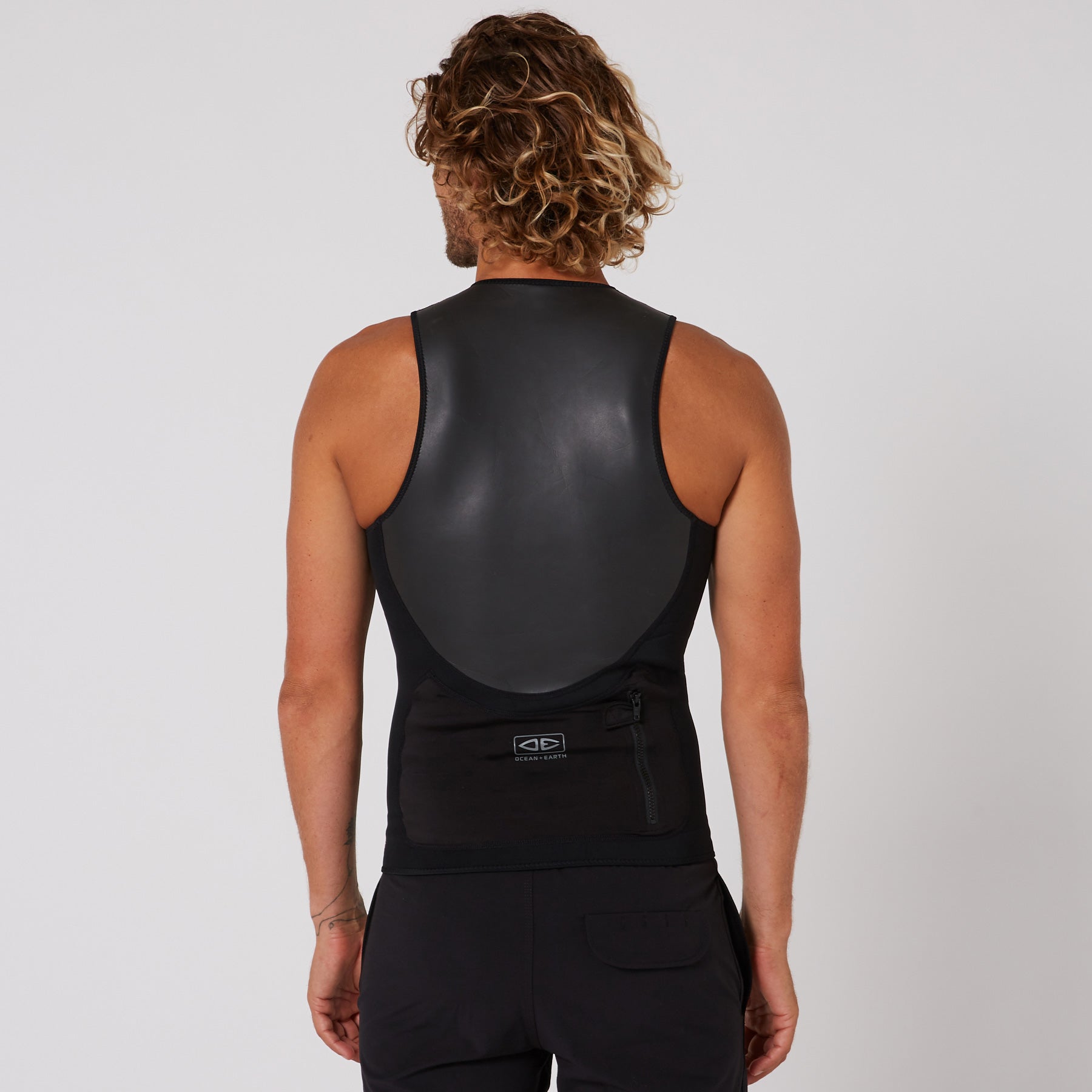 Keep your body warm and your arms free for maximum performance. The Double Back Sleeveless Front Zip Paddle Vest - 1.5mm is made from high quality Ultra 360 Super Stretch neoprene with flatlock seams for comfort and durability. Full front zip opening for easy on/off and a back pocket with zip closure.